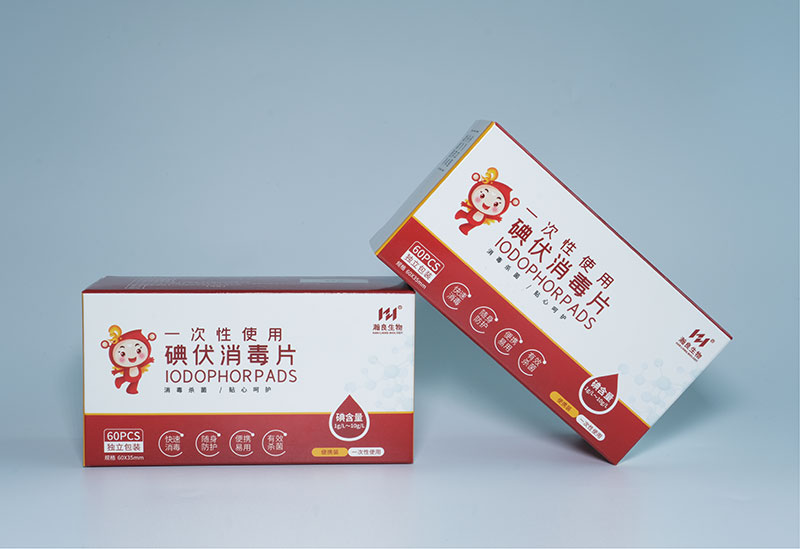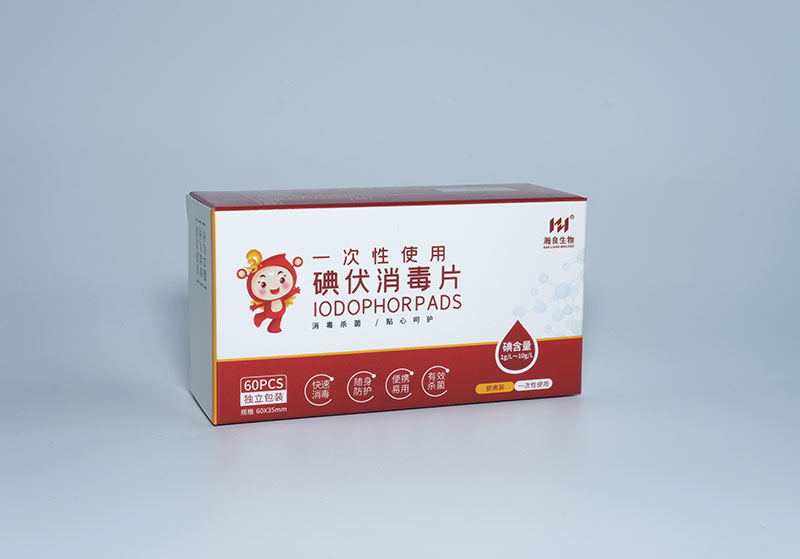 产品说明:本产品适用于注射、输液前对完整皮肤的消毒,由无纺布与有用碘含量为4.1 g/L-5.1 g/L的碘伏消毒液组成。